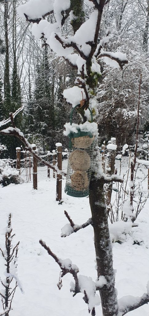 Mélanges de graines avec beaucoup de tournesol et boules de graisses, viennent les aider à traverser ces périodes ou il leur est difficile de trouver de la nourriture. Ne pas oublier un point d’eau hors gel!